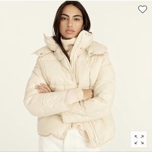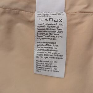 Pretty worn and shows some wear (see pics). The zipper has some chipping. Minor darkening around the pockets and slightly hollow spot in the left waist filling from washing which may be fixable by redistributing the filling. Still a really cute puffer!