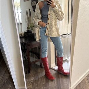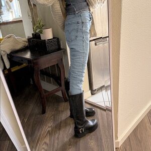 This is a super cool pair of Levi’s 501s they’ve been cropped from the original size. So see measurements. The way I wore them was just with boots Stylish and comfortable light blue jeans perfect for any casual outing. These jeans offer a flattering fit and versatile style.