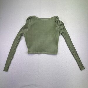 Aerie Shirt Women's Large Long Sleeve Cropped Ribbed Button Front Green Stretch