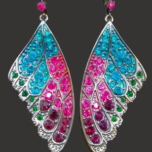 Butterfly Wing Dangle Earrings Colorful Gunmetal Gray Sparkle Pink Blue Crystals