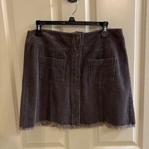Chic mini skirt in soft corduroy. Features front buttons and pockets. Perfect for casual outings.
