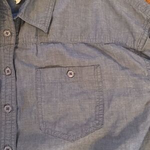 Excellent condition Workshop Andrea Jovine size small 100% cotton denim, looking button down shirt, cute pockets in the front and buttons see sleeves picture where you can roll it and button them up (1014)