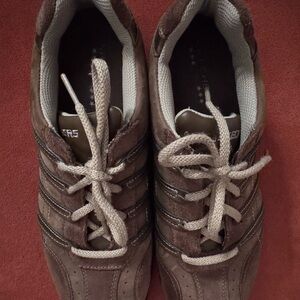 Classic, comfy Skechers walkers in a versatile brown suede/leather combo — great for everyday wear, travel, or casual errands.
