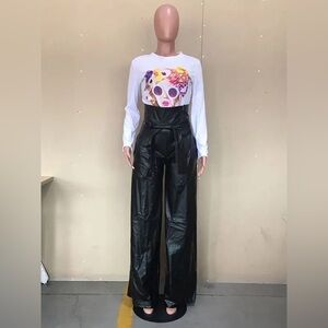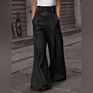 Step out in style with these black wide-leg leather pants. Perfect for making a bold fashion statement.
