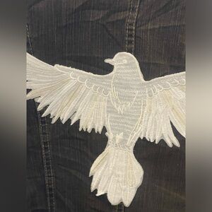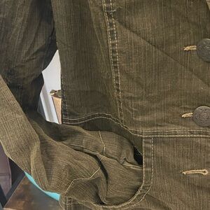 Stylish khaki blazer by Tribal. Features classic lapel and button closure. Ideal for versatile wear. Customized with a white dove, making it a super unique piece. Size Small. Designed and crafted by yours truly. Please to enjoy!
