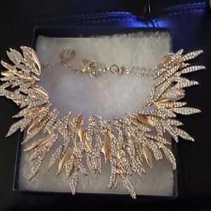 This stunning necklace features a beautiful blend of gold and silver tones, perfect for adding a touch of elegance to any outfit. The intricate leaf design is both unique and eye-catching.