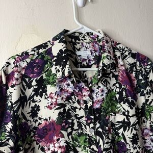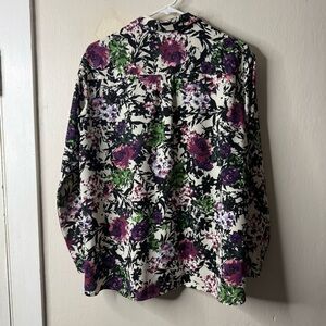 J Jill Cream Floral Dark Button Front Long Sleeve Blouse