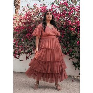 Jessakae Havana Maxi Tulle Ruffle Dress Brick Mauve Pink XS