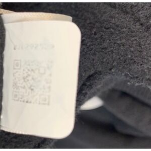 The North Face Half Dome pullover hoodie in black with white logo print. Women's medium, soft fleece interior, drawstring hood, and front pouch pocket. Still comfortable and functional despite noted flaws—great for casual wear, work, or outdoor layering.
