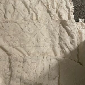 Elegant textured chenille bed spread in a soft cream color. Never used, has been stored several years! Quality item, queen size.