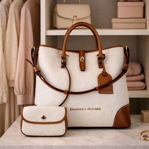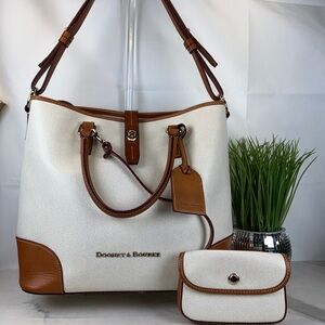 Dooney & Bourke Shelby Shopper Shoulder Tote Bag White Tan Leather Wristlet Set