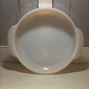 Enhance your kitchen with this elegant white and peach iridescent baking dish. Perfect for all your baking needs.