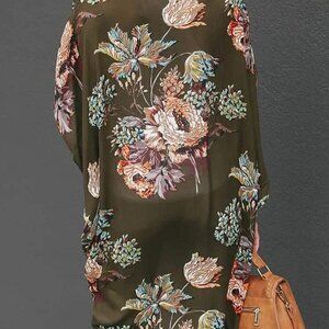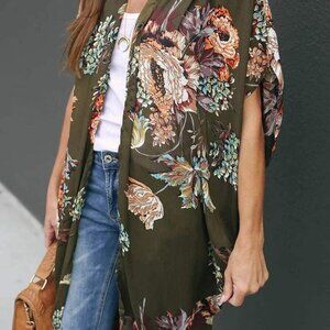 Womens Floral Kimono Duster Cardigans Short Sleeve Draped Oversized Beach Cover