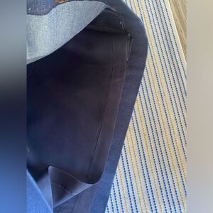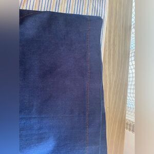 Dark blue denim skirt with pockets and brown thread seams as a detail, skirt with lining with gentle use in excellent condition
