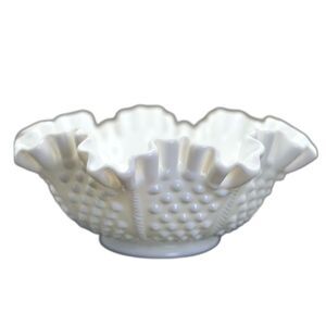 Beautiful Fenton white hobnail ruffled bowl in very good condition. No chips or cracks