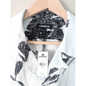 Express Mens White Floral Print Short Sleeve Shirt Vacation Beach Resort XL NWT