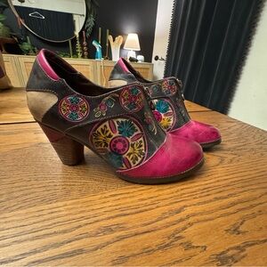 Elegant fabric with intricate black and gold design. Features NILS branding. Really great condition. One small