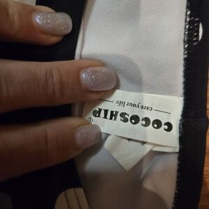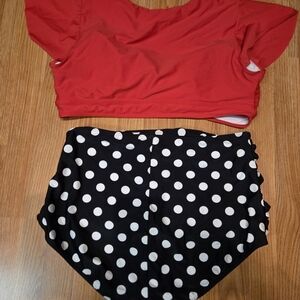 Chic black bikini with white polka dots. Perfect for a stylish beach day. high waisted
