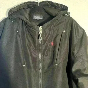 Men’s Ralph Lauren Polo Reversible black hooded This Ralph Lauren Polo coat is a versatile addition to your wardrobe. The outer shell is made of durable polyester and it comes in a sleek black color. This coat is perfect for men who want a reversible parka that can be worn on any occasion.