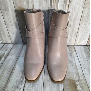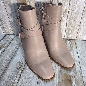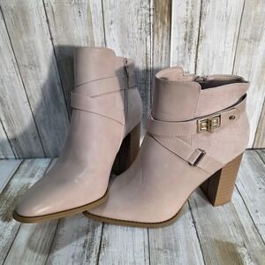 JustFab Carol Taupe Suede Buckle Strap Block Heel Ankle Boots Womens US 10