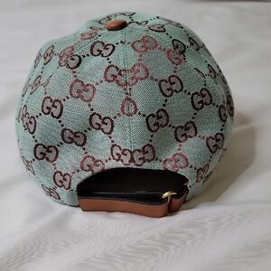 Stylish Gucci hat with iconic logo pattern. Perfect for adding luxury to your look.