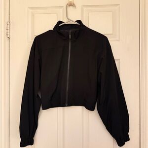 Sleek charcoal jacket with zip closure. Ideal for layering.