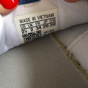 Adidas Cloudfoam Kids White Sneakers with Blue and Red Accents Sz 2.5 Like New