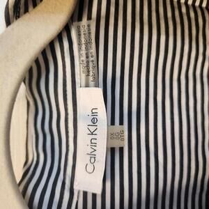 Calvin Klein women's blouse featuring a classic black and white vertical stripe pattern.