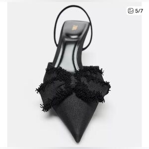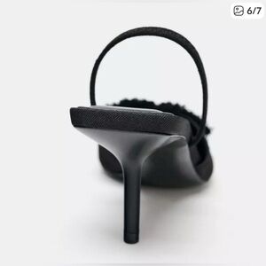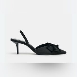 ZARA black slingback pumps with a pointed toe and elegant bow detail at the front. A polished yet modern heel that effortlessly elevates denim, workwear, and evening outfits. Comfortable mid-height stiletto makes them easy to wear day to night.