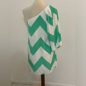 STYLE: Dress, one shoulder, chevron