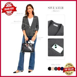 Brand new with tags and in flawless condition — this elegant knit sweater blazer delivers a modern, elevated look perfect for the office, business casual wear, or chic everyday outfits. The fit is tailored and flattering, crafted from a breathable, stretchy fabric for all-day comfort.