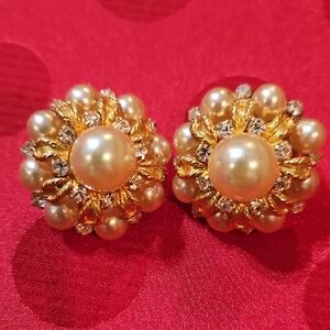 These stunning earrings are preloved and in great condition. They feature faux pearls and crystals on a doomed gold-tone finish and theycare all present. They are signed Chr Dior 1968 Germany. They do show signs of minimal wear. Be sure to review all photos for further description.