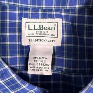 Keywords: L.L.Bean, button down shirt, mens shirt, plaid shirt, blue plaid, long sleeve shirt, traditional fit, casual shirt, menswear, XXL, extra extra large, classic, comfortable, cotton shirt