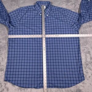Classic mens button-down shirt from L.L.Bean, a versatile and comfortable addition to any wardrobe. Featuring a timeless blue plaid pattern with white accents, this long-sleeved shirt offers a traditional fit and a button-down collar. Perfect for casual Fridays at the office, weekend outings, or relaxed evenings at home.