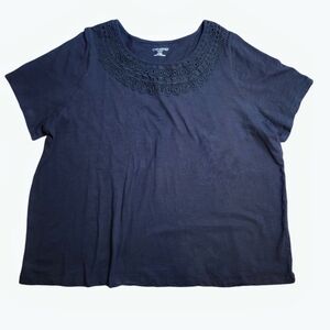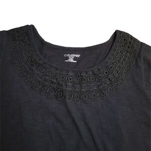 Catherine's Plus Petite Slub Knit Crochet Black Tee•1XWP NWOT