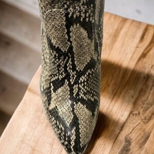 Franco Sarto Kortney Booties Snakeskin Print Pointed Toe 3.5" Block Heel Zip