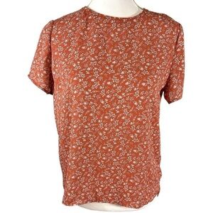 🌸Banana Republic- Orange Floral Lightweight Fabric Flounce Sleeve Top- Size XS