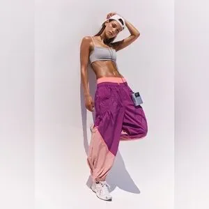 Forever free, these slouchy nylon pants feature a colorblock design for a playful touch to a grab-and-go pair.