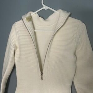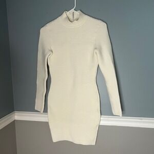 Torn by Ronny Kobo Cream Ribbed Mock Neck Bodycon Mini Dress Women small