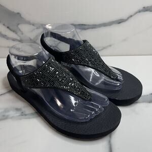Ryka Wmns Black Faux Leather Vera Fashion Wedge Sneakers Sz 10 Comfort Slip-On