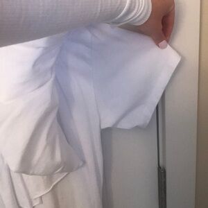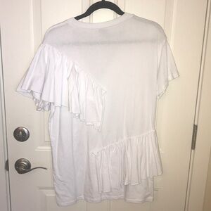 Left sleeve has ruffle covering sleeve