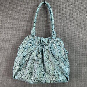 Charming Charlie Blue Snake Print Shoulder Bag With Scrunched Design