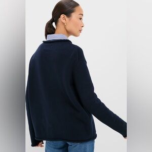 • Roll neck, sleeves, and hem