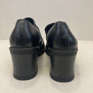 Vintage Chunky Heels Buckle Shoes Loafers Womens 9.5 Goth Punk Grunge Black