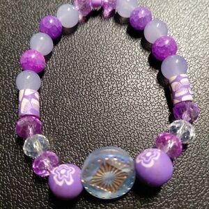 Purple & Blue Mixed Media Beaded Bracelet Handcrafted 6"