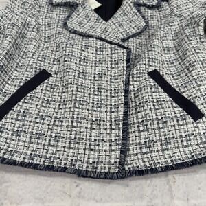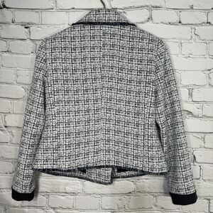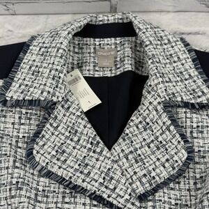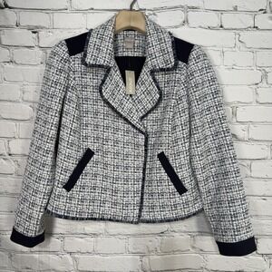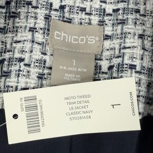 Chico's Moto Tweed Trim Detail LS Jacket Size 1 8-10 Classic Navy 1/2 Zip NWT