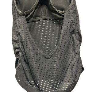 Stylish black tank top. Perforated design. Lightweight and breathable. Perfect for workouts.