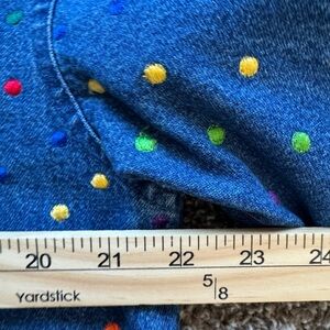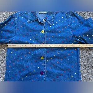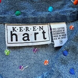 Vintage Keren Hart Rainbow Polka Dot Embroidered Denim Jean Jacket Women's M EUC