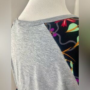 LuLaRoe Randy Tee Shirt NWT 3/4 Raglan Knit Sleeve Gray Black Multicolor Floral