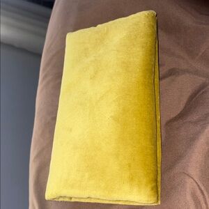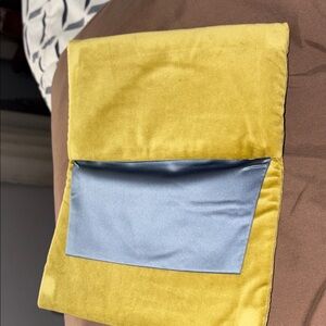 Limited Edition.Elegant Gucci authentic cushion in mustard velvet. Features blue satin accents and branded pouch. Size 5x10” X-Large